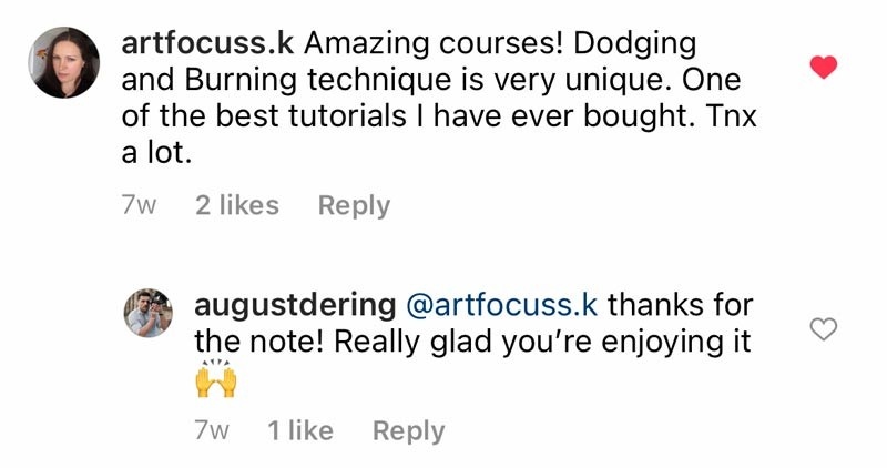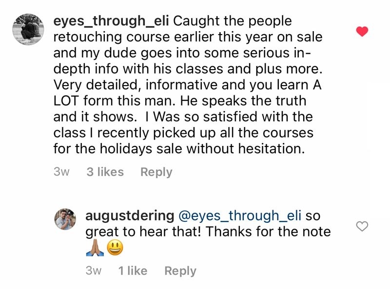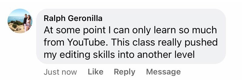 "This was a great course. I’m always looking for new ideas and workflows with retouching that doesn’t make my subjects look plastic and this was definitely the one."